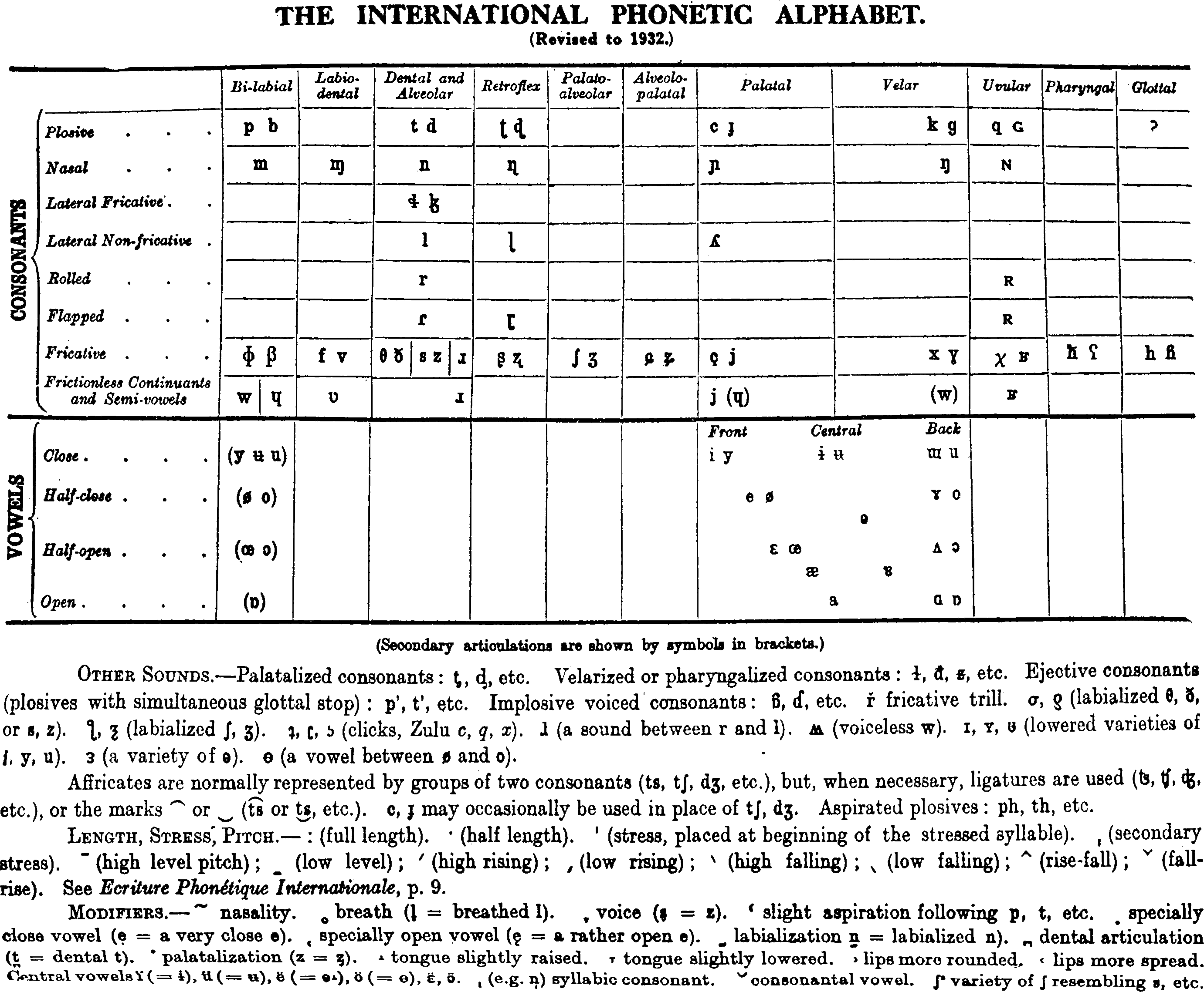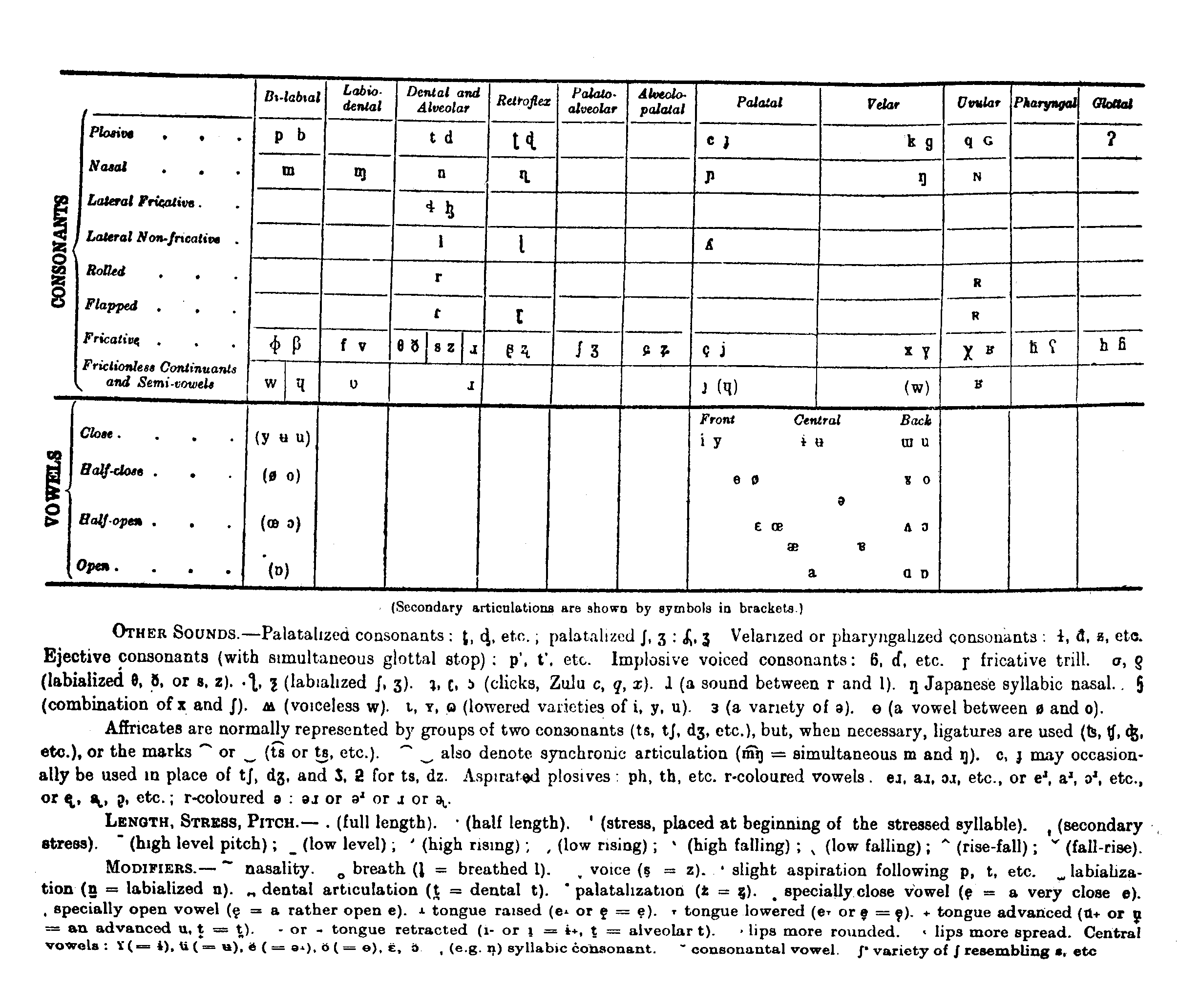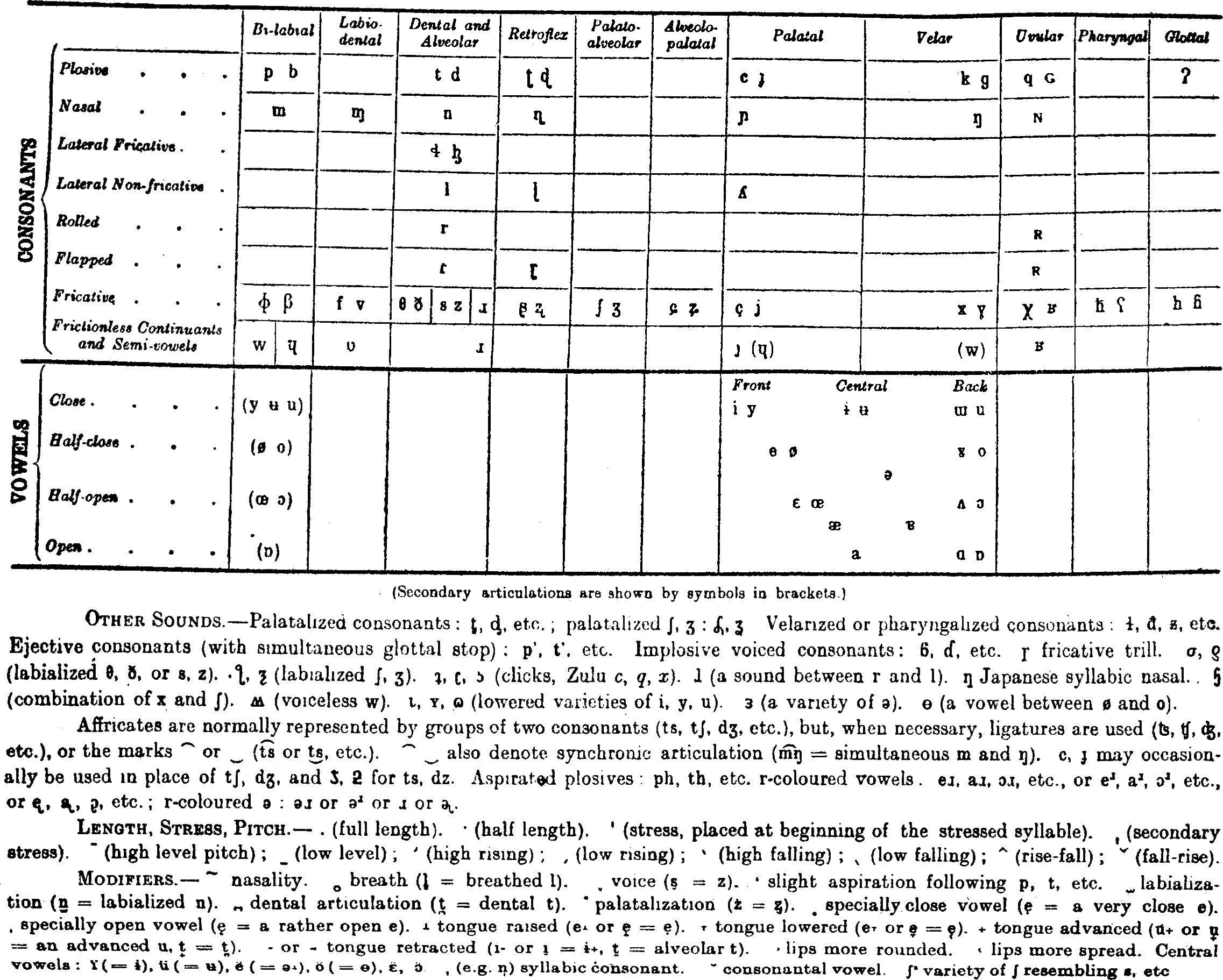 | Note: | first version of the International Phonetic Alphabet as published in “The Phonetic Teacher” |